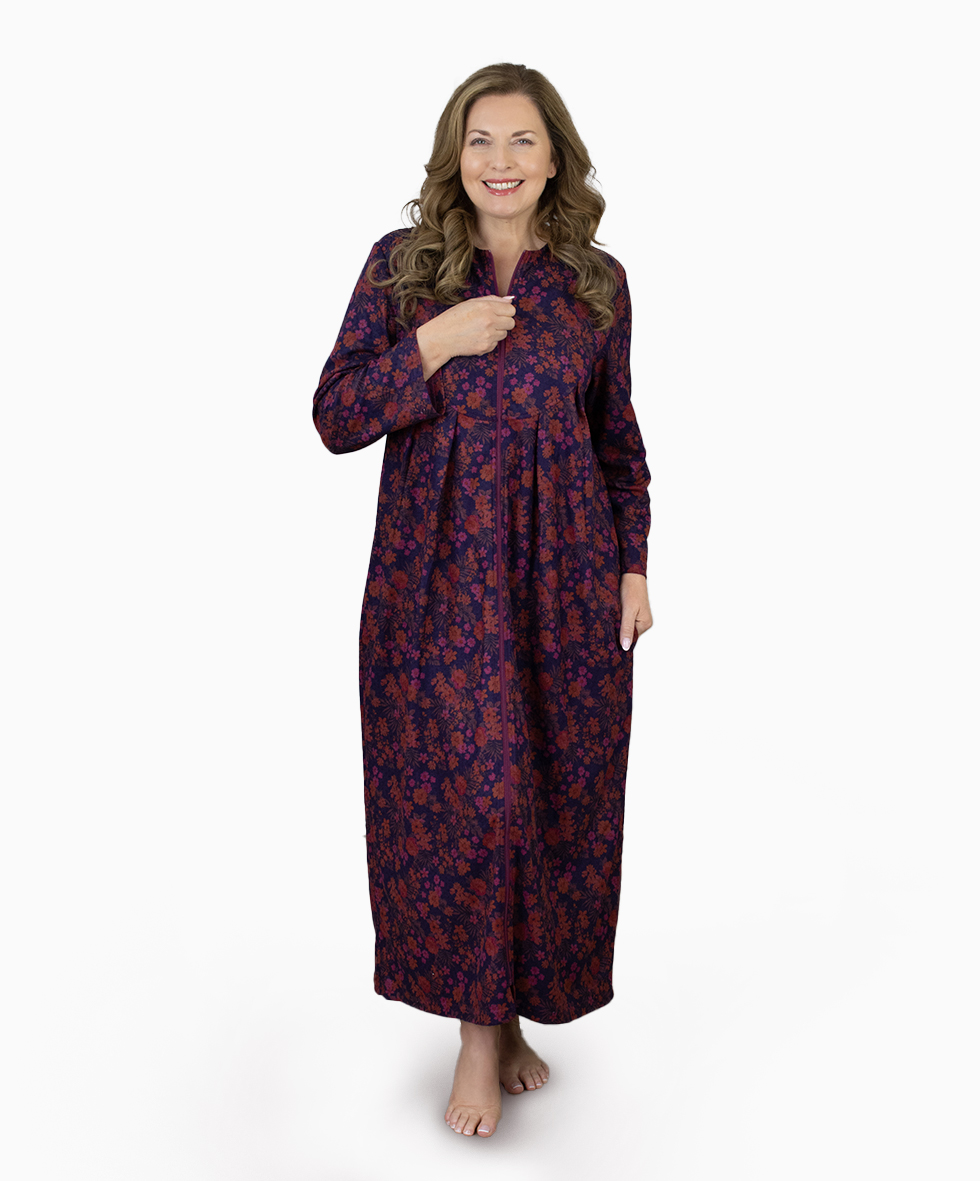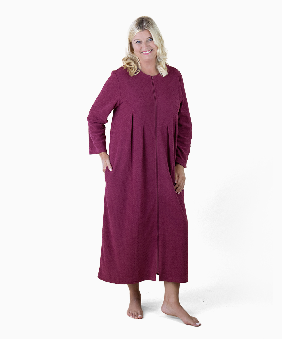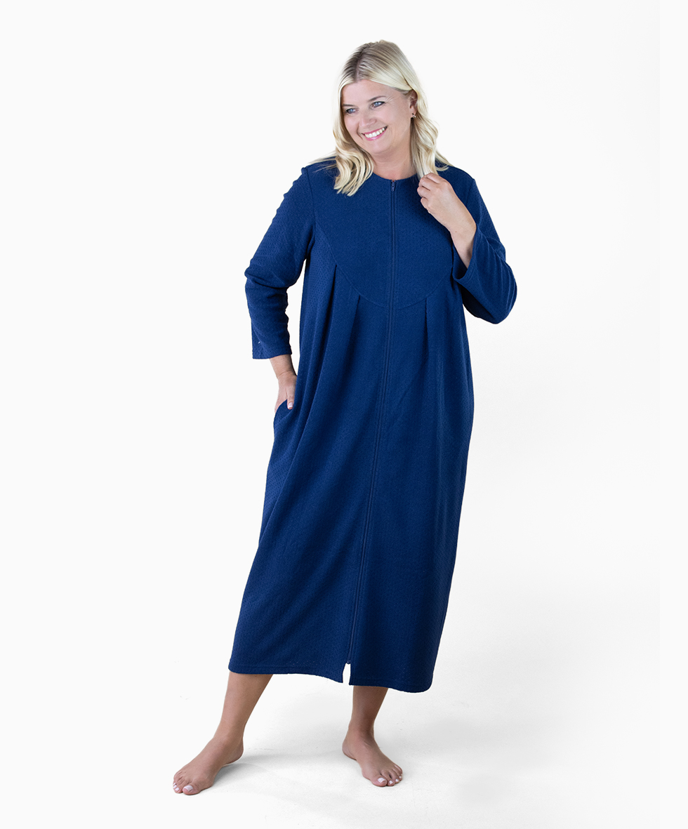 This thick velour kaftan is ideal for wearing around the house in the colder months. With a soft long-sleeved design that will help keep you cosy and warm. It features a full-length front fastening zip that makes it easy to get on and off. The two side seam pockets have room to carry your essentials with convenience. This super comfortable and roomy kaftan is also available in plus sizes, making it ideal for any size or shaped figure.
